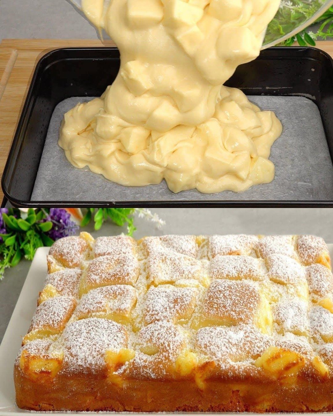 Rezultatul este o prăjitură cu mere și pudding de vanilie fină, parfumată și ușor umedă — un desert pe care sigur îl vei repeta. Se potrivește perfect cu o ceașcă de cafea sau lapte cald. Poftă bună!