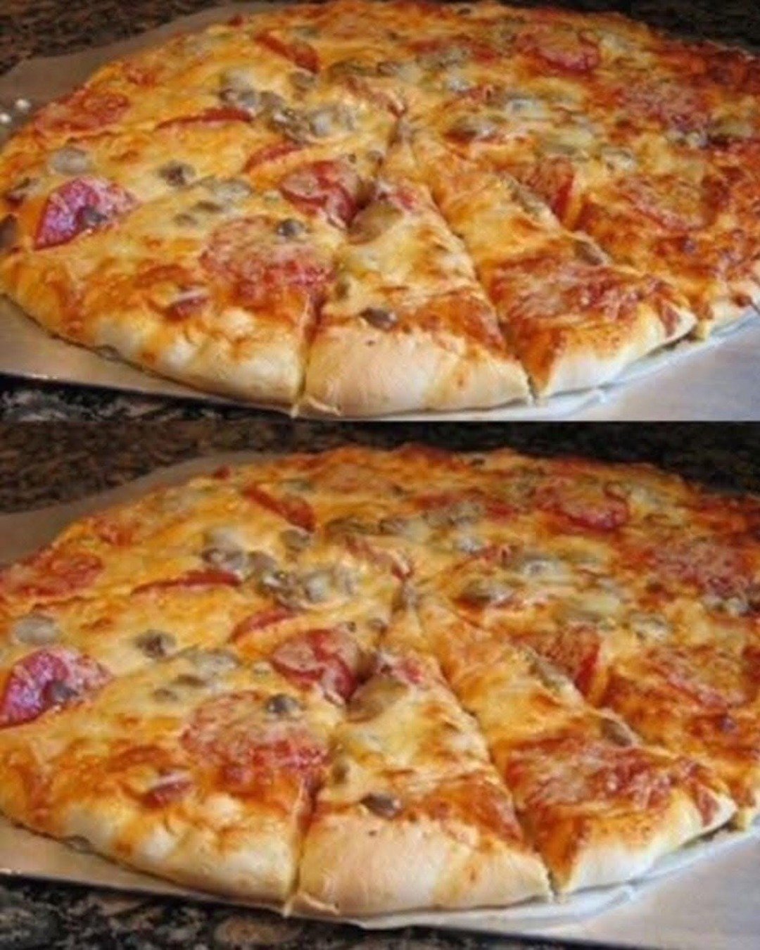 - Pizza poate fi servită imediat sau reîncălzită a doua zi, rămânând moale și gustoasă.