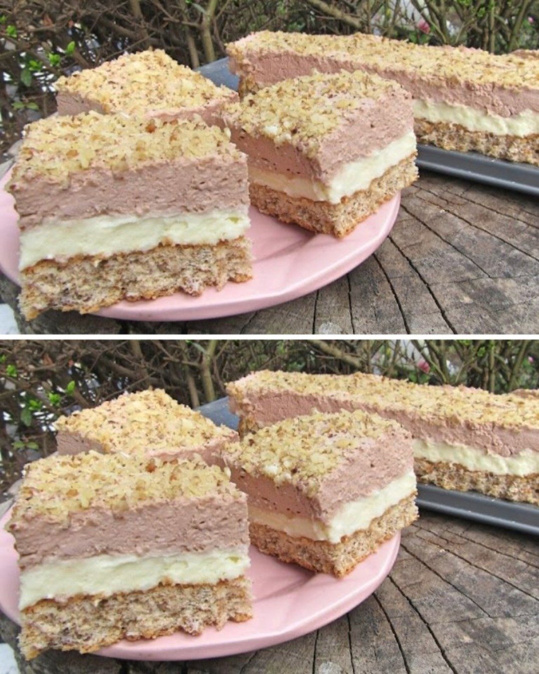 Această prăjitură Monte cu blat de nucă, cremă catifelată de vanilie și spumă ușoară de ciocolată este un desert elegant și rafinat, ideal pentru ocazii speciale. Texturile se îmbină perfect — blatul pufos de nucă, crema densă și stratul aerat de ciocolată creează o prăjitură care se topește efectiv în gură!