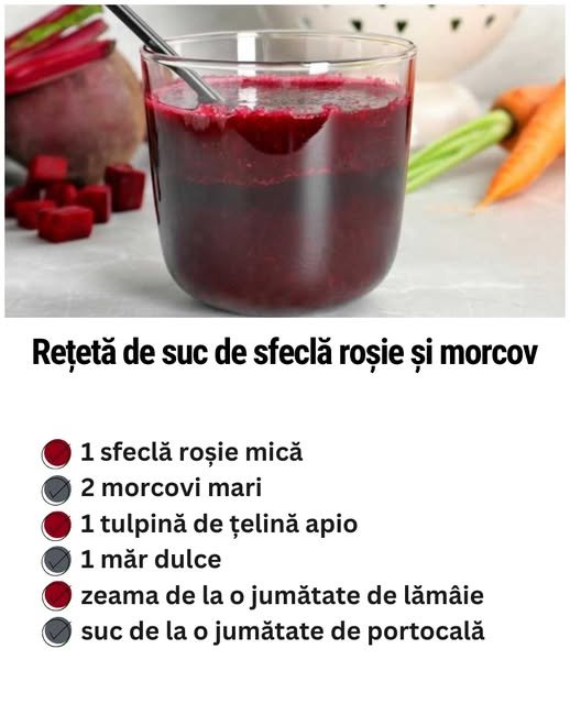 Această rețetă de suc natural de sfeclă roșie și morcov este ideală pentru a-ți începe ziua cu energie, culoare și vitalitate.