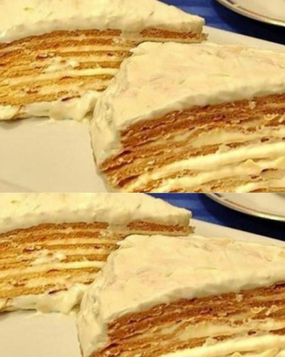 - Lăsați tortul la frigider 4–6 ore, ideal peste noapte, pentru ca foile să se înmoaie uniform.